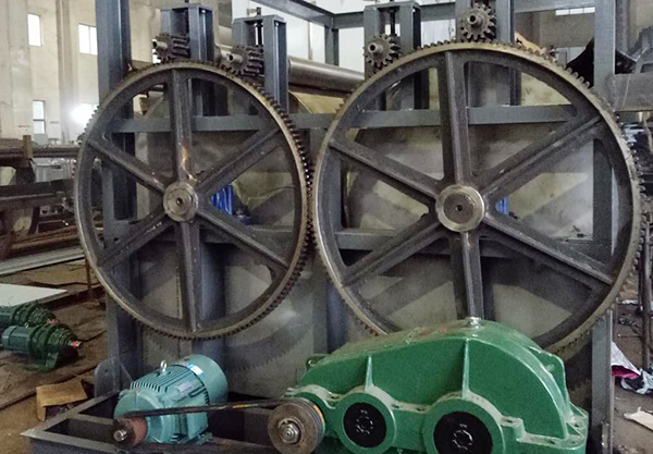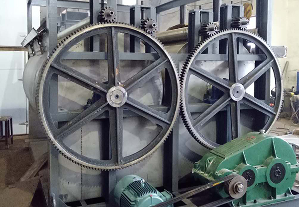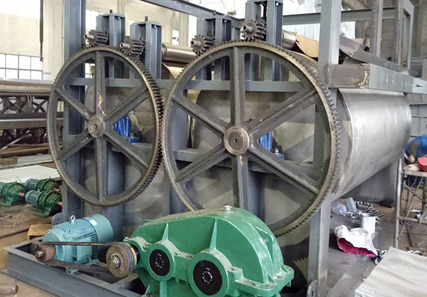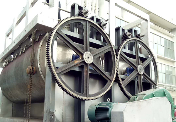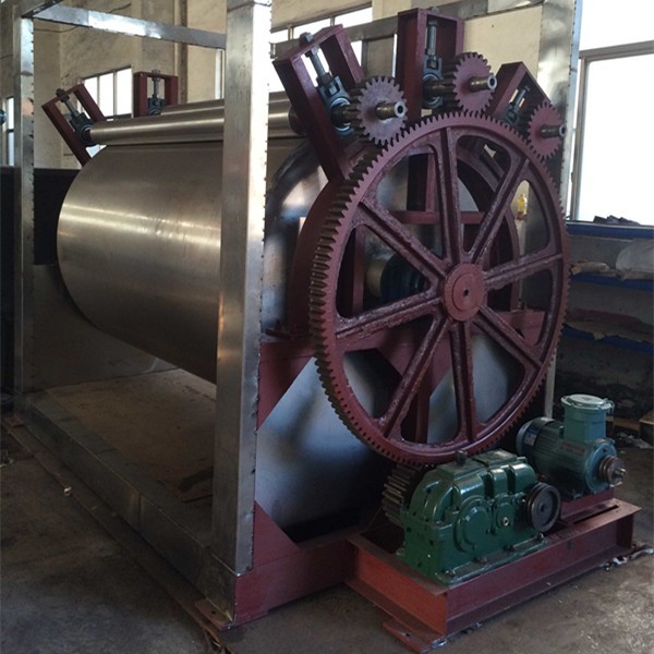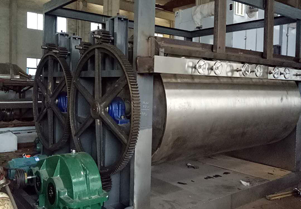 滾動刮板干燥機由主滾筒、機架、加料裝置(上部加料或下部浸料)、驅動機構、螺旋送料裝置、吸塵裝置、刮刀裝置等部件組成。