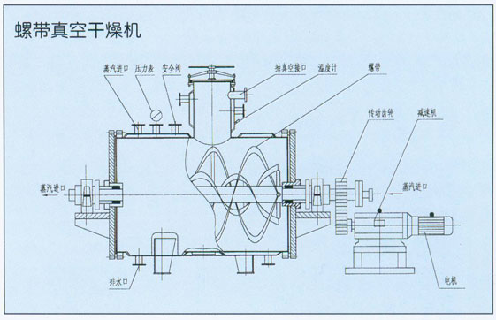 本機采用夾層與內攪拌同時加熱方式,傳熱面積大,熱效率高。 本機設置攪拌,使物料在筒內形成連續循環狀態,進一步提高了物料受熱的均勻度。 本機設置攪拌,從而可順利進行漿狀、膏狀、糊狀物料干燥。